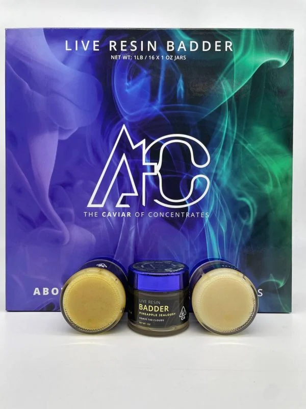Above the Clouds Badder. Badder is a kind of cannabis concentrate that resembles thick frosting or cake batter due to its often whipped nature. Badder is typically categorized as cannabis wax, the same as budder; however, it will be thicker and stickier than budder. This distinctive “blonde” tint, which can fluctuate in tone from pale blonde to rich gold, is what the concentrate most frequently flaunts.